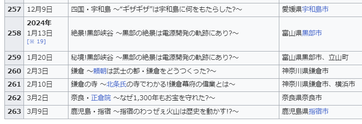 #262奈良・正倉院は「なぜ1300年もお宝を守れた?」、#260鎌倉は「頼朝は武士の都・鎌倉をどうつくった?」だね。